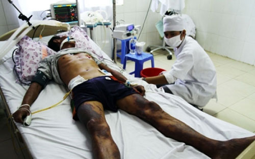 Bệnh nhân mà xe cấp cứu nhận đưa đi cấp cứu cũng đã ăn tiết canh lợn gây ra triệu chứng và hậu quả là bác sĩ không thể chữa trị được.Hai ngày trước khi gọi xe cấp cứu, bệnh nhân ăn tiết canh ở quán gần nhà. Sau hai ngày bệnh nhân sốt cao, đau đầu, nôn, ý thức kém và nổi nhiều ban tím vùng mặt, vành tai, cẳng chân và đùi 2 bên. Bệnh nhân được gia đình gọi xe cấp cứu và đưa vào bệnh viện 115.Bệnh nhân nhập viện trong tình trạng nguy kịch do sốc nhiễm khuẩn. Bệnh nhân được cấp cứu tích cực, dùng kháng sinh, thuốc vận mạch, thở máy, lọc máu liên tục nhưng tình trạng sốc không cải thiện, các ban hoại tử tiếp tục lan rộng, tiên lượng xấu.3 ngày sau gia đình gọi xe cấp cứu 115 và xin bệnh viện đưa bệnh nhân về nhà…